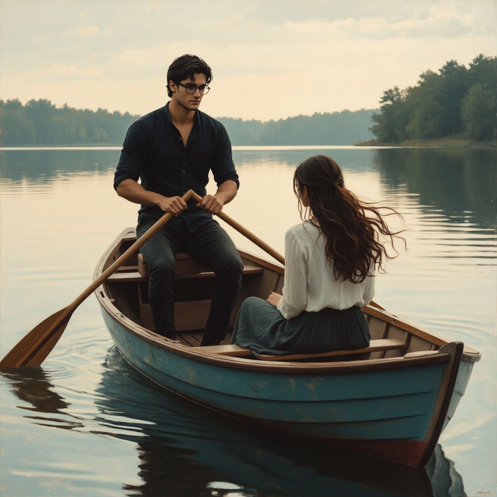 После обеда они взяли лодку и медленно поплыли по водной глади. Андрей греб неторопливо, позволяя Жанне наслаждаться тишиной и покоем. Вода мягко покачивала лодку, солнечные блики танцевали на поверхности, а в воздухе витала лёгкая, почти волшебная атмосфера.