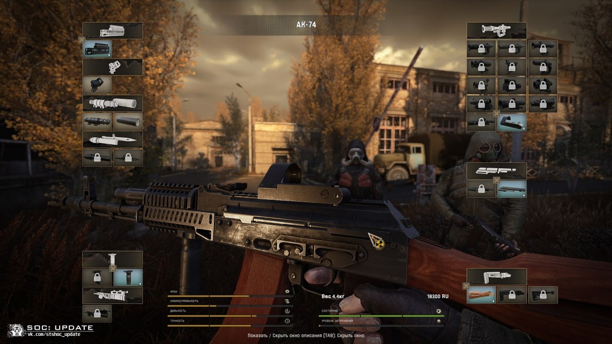 0». Как сообщает разработчик на первом этапе закрытого тестирования не было обнаружено критических ошибок, однако выявлен ряд проблем с локациями, которые исправят после старта второго этапа ЗБТ. Т.к. второй этап начнётся после всех работ над оружейной частью автор продемонстрировал свежие наработки в данной области: • Система кастомизации получила важные доработки, а всё оружие на базе анимаций от АК из модификации Gunslinger получило новый набор под тактические рукоятки, что в свою очередь позволило избавиться от некоторых багов и недоработок; • Заявленная система апгрейда снаряжения была переписана с нуля — визуально она напоминает меню модернизации из «Чистого Неба» и «Зова Припяти», однако техническая реализация совершенно иная. С момента выхода последнего новостного ролика было принято несколько решений касаемо новых фич, одним из которых стал отказ от идеи заражённых стимуляторов. Несмотря на разработку версии 2.0, доступная версия мода в будущем обзаведётся масштабным патче
