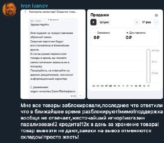 «Мне все товары заблокировали… поддержка не отвечает, кредит 12к в день за хранение, товар вывезти не дают, заявки отменяются складом». Marketplace_biz - отдай свой буст каналу