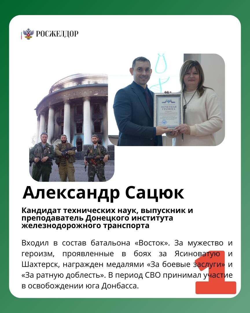 Железнодорожники во все времена оставались опорой государства, ежедневно демонстрируя дисциплину, ответственность и готовность действовать в самых сложных условиях. И в наши дни большое число работников отрасли проявило стойкость и гражданскую позицию, встав на защиту Отечества. За проявленные мужество и самоотверженность многие удостоены государственных наград. Но главная ценность — это их сила характера, верность присяге и готовность служить стране. Мы благодарим всех, кто сегодня выполняет боевые задачи на передовой, и склоняем головы перед памятью тех, кто не вернулся домой. Их подвиг навсегда останется в истории и в наших сердцах. В карточках рассказываем о нескольких защитниках Отечества среди наших коллег. 🚆 Подписаться на Росжелдор в Telegram| Читать нас в MAX