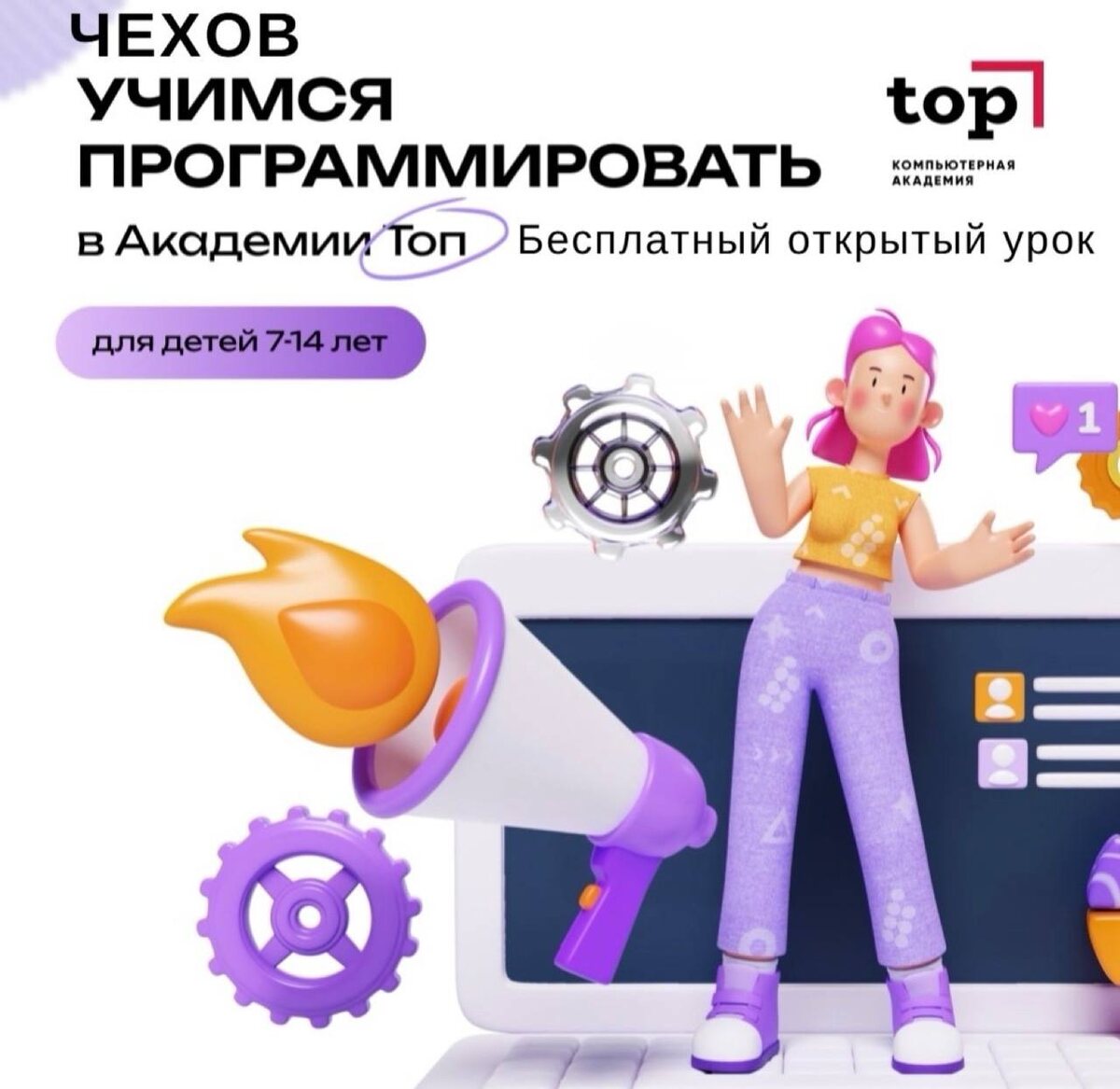 ! 🖥 Ваш ребенок получит уникальный опыт работы с компьютером и узнает: что такое 3D принтер, из чего он состоит и как им пользоваться. 🤩 Каждый день — это новое приключение и изучение различных направлений из IT-сферы, полное веселья и новых знаний. 👩🎓 Не упустите возможность подарить своему ребенку классно провести время в компании единомышленников. Мы обеспечим творческую атмосферу, которые оставят незабываемые впечатления! 🚀 ➡ Запись на бесплатный урок по номеру +7 (905) 780 50-54 Количество мест в группе ограничено ❗ 📍Мы находимся по адресу: ул. Полиграфистов 1 (3 этаж) 🕹️ Присоединяйтесь к нам в нашей группе https://vk.com/ittopchekhov 🕹️Ознакомьтесь с нашими контактами и записаться: https://clck.ru/3N79H8