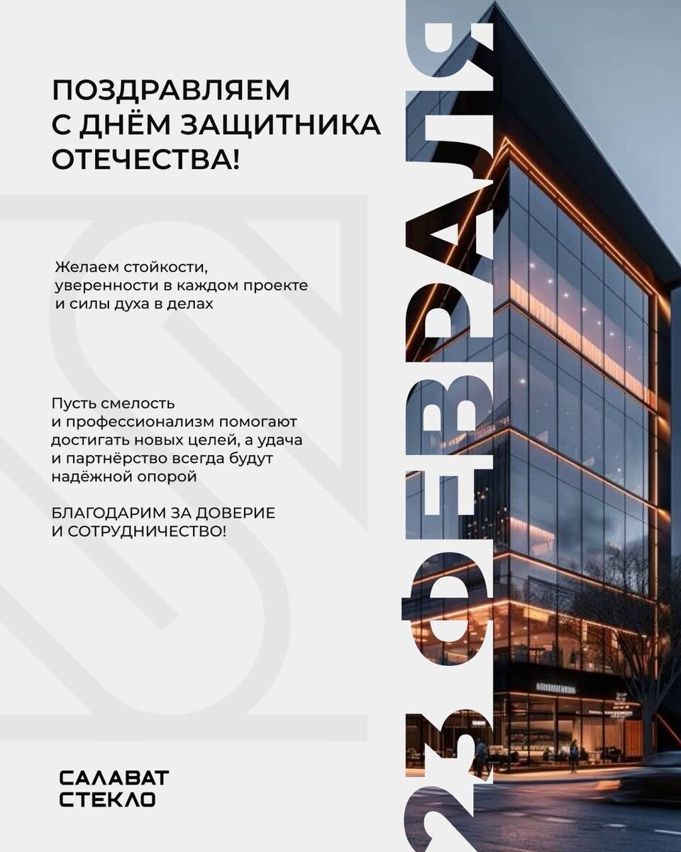 Дорогие мужчины — наши клиенты, партнёры и коллеги! АО «Салаватстекло» поздравляет вас с Днём защитника Отечества