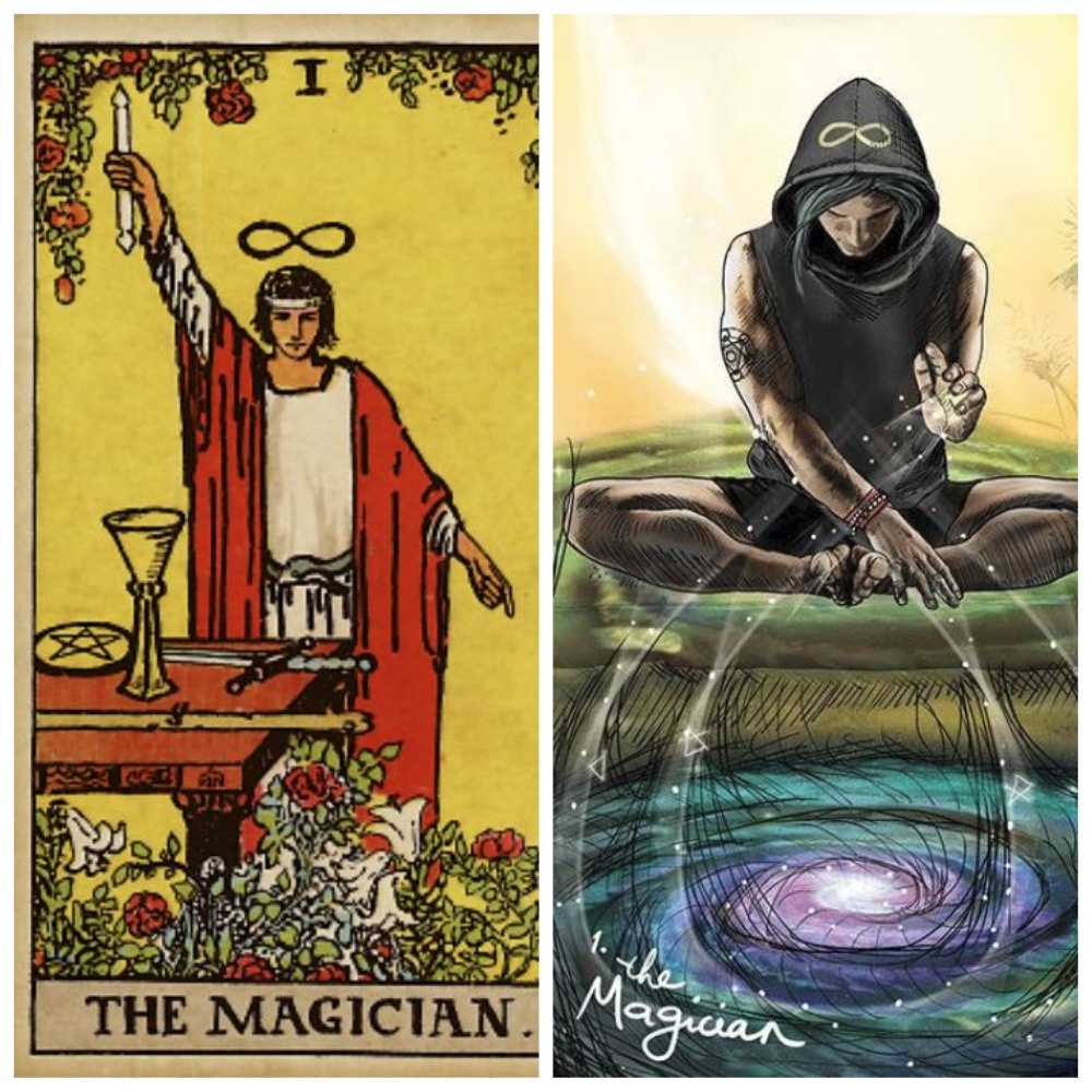 Главный символ Мага – стол с четырьмя магическими инструментами (Жезл, Пентакль, Меч и Кубок) и знак бесконечности над головой (если рассматривать колоду Уэйта). Это означает, что Маг способен оперировать всеми четырьмя стихиями нашего мира: