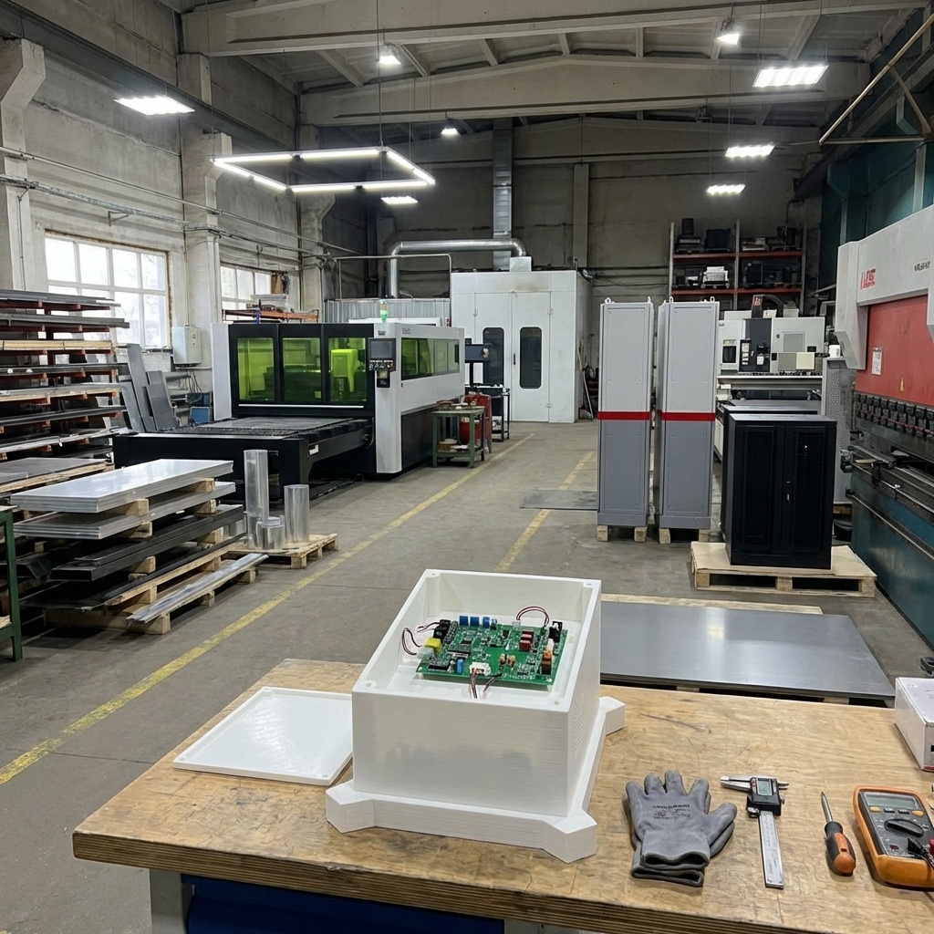 3D-печатные корпуса заменяются литьевыми формами или штампованным металлом. Паяные соединения уступают место стандартизированным разъёмам. Уникальный крепёж заменяется унифицированными элементами. Каждое решение критически влияет на себестоимость, временные рамки и качество продукции.