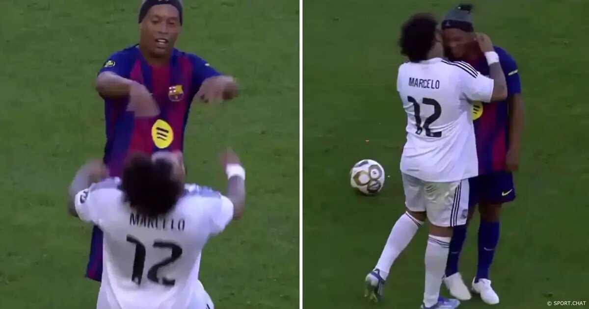 Во время матча легенд между Реал Мадрид и Барселона в Лос-Анджелесе болельщики стали свидетелями шуточного эпизода с участием двух бразильцев — Марсело и Роналдиньо. Когда «Реал» готовился разыграть мяч со своей половины поля, Марсело подошёл к стандарту. В этот момент Роналдиньо с улыбкой приблизился к нему и слегка подтолкнул. Защитник ответил демонстративным падением, словно это был решающий эпизод настоящего «Эль Класико», а не товарищеская встреча ветеранов. Эпизод вызвал смех на трибунах: спустя несколько секунд Марсело поднялся, а футболисты обменялись объятиями под аплодисменты зрителей. Сцена стала символом атмосферы матча — принципиальное соперничество, которое в своё время определяло эпоху, теперь уступило место дружбе и уважению. Несмотря на прошлые ожесточённые противостояния в чемпионате Испании, в игре легенд на первый план вышли юмор и взаимная симпатия.