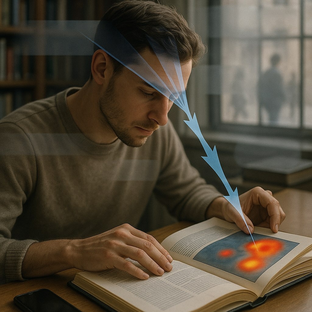 Активное внимание часто описывают как восходящий поток обработки: что-то в среде «выскакивает» само по себе и перетягивает фокус. За это отвечают так называемые карты значимости - условные схемы, которые показывают, какие стимулы сейчас выделяются на фоне остальных. Но есть и другой механизм - нисходящее внимание (top-down). Оно задаётся картой приоритетов: кора головного мозга как бы «инструктирует» сенсорные зоны, куда именно стоит смотреть и что считать важным в соответствии с текущей задачей. Здесь ключевую роль играют произвольные цели. Мы заранее настраиваемся на нужные параметры среды, и это облегчает поиск информации. Например, если мы ищем иллюстрацию в книге и помним, что она была в верхней части страницы, внимание будет чаще возвращаться именно туда. Мы как будто включаем внутренний фильтр: «смотри сюда, игнорируй остальное». Если опираться на классическое деление на произвольное и непроизвольное внимание, картина получается довольно прямой: восходящее внимание ближе к непро