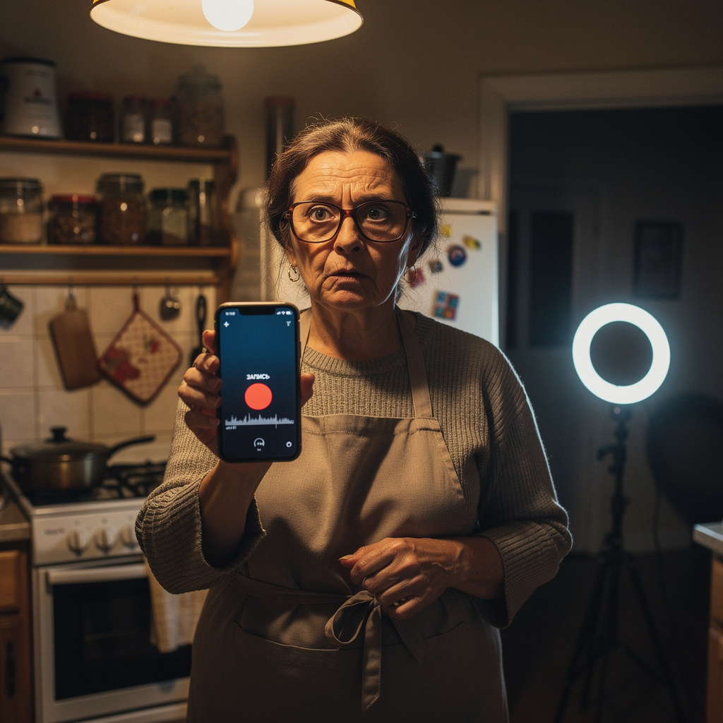 На следующие выходные Алина приехала. С лампой, со штативом, с двумя телефонами. Расставила оборудование в гостиной. Потом — я увидела — поставила один телефон на кухне. У стены, за банкой с мукой. Экраном ко мне. Камера включена.
