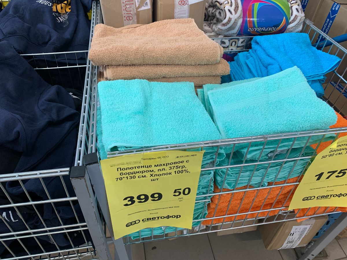 Также есть полотенца махровые размером 50х80 см. Они также изготовлены из хлопка. Производитель Узбекистан. Цена 175 рублей.