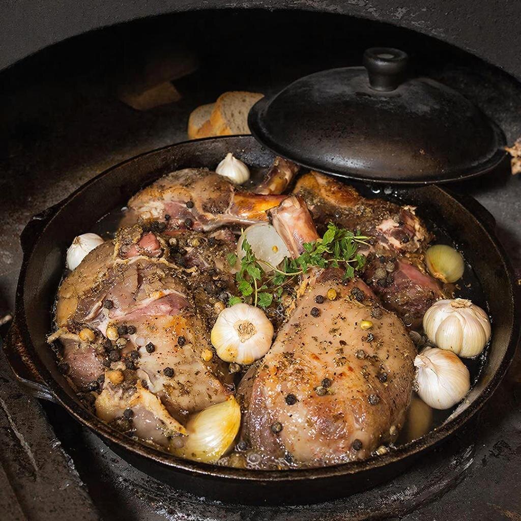 - Запекание: Плотно накрыть сковороду или форму крышкой. Поставить в предварительно разогретую до 180-200°C духовку (или жаркую печь, если есть такая возможность).