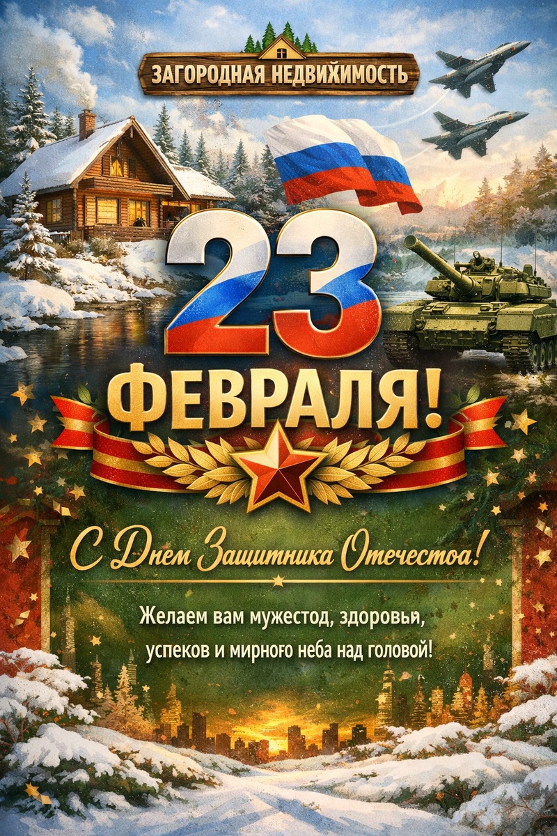 ! Поздравляем всех мужчин — защитников своих семей, домов и будущего. Пусть ваш дом будет крепостью, участок — точкой силы, а решения — уверенными и дальновидными. Желаем надёжности в делах, стабильности в инвестициях и тепла за городом. 🏡