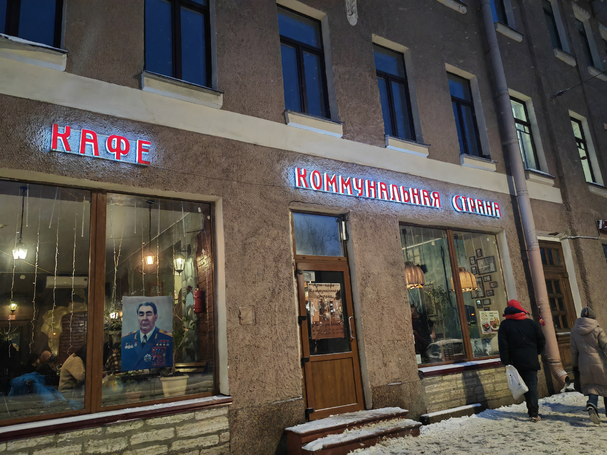 Мы вчера посетили кафе «Коммунальная страна» на Кронверкском проспекте, дом 65. Выбор этого кафе был случайным: в предыдущие заведения, куда мы заходили, свободных столиков не оказалось, а день был выходной и предпраздничный. Здесь нам сообщили, что остался один свободный столик. Желания посещать это кафе у меня не было, поскольку ностальгии по коммуналке у меня нет, но так уж сложилось. Однако было интересно. Интерьер кафе не особо продуман: просто сделали ремонт и натащили старого барахла, и вот вам весь дизайн. Но меню продумано интересно: Салат оливье переименован в «Иронию судьбы», ассорти солений – «Республика ШКИД», эскалопы из свинины – «Два мушкетёра», куриный бульон – «Летят журавли», а горячая сковорода с разными видами мяса – «Полосатый рейс». Просто удовольствие выбирать, что бы покушать. За соседним столиком сидела семья из трех человек, и они спорили, что взять: папаша хотел «Интердевочку», а мамаша – «Полосатый рейс». В общем, это прикольно. Сами блюда не блещут изыском