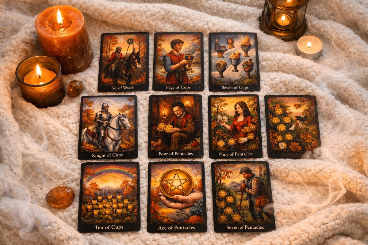 9 Пентаклей иллюстрация холостяцкого рая. Здесь уютно и сытно, всё по полочкам, стены расписаны успехами, а диваны самоуважением. Он любит это своё личное пространство, свой порядок, свою гордую независимость. О, если бы отношения можно было вписать в строгий бюджет времени и эмоций он был бы первым в очереди за семейным счастьем! Но пока всё не по смете дверей не открывает, боится потерять контроль и уют сразу. Его молчание — это не прямой отказ, а лаконичное я сам разберусь. Это defense mode, включённый на полную мощь. Он внутренне готов к чувствам, но пока побеждает страх всё потерять, причем иногда даже то, чего унего ещё не было. Такой темперамент требует времени и небольшой толики женского терпения, а порой и щедрой порции юмора, чтобы не видеть в его отчуждённости оскорбления для себя.