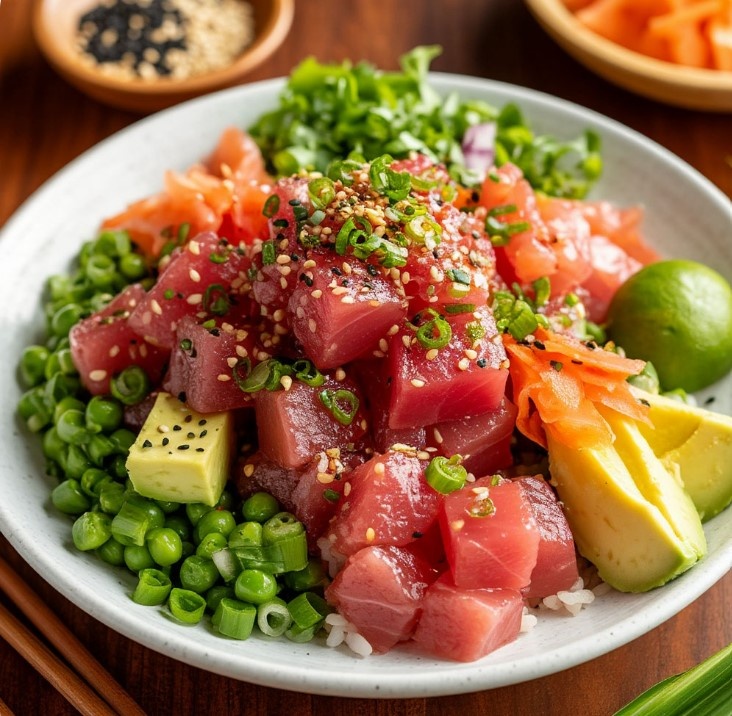 Потому что поке — это не просто еда. Это возможность почувствовать себя на гавайском пляже, даже если за окном серый ноябрь. Это идеальный обед для тех, кто следит за фигурой, но не готов жертвовать вкусом. В 100 г тунца — всего 132 ккал, зато 28 г чистого белка и полезные омега-3 кислоты .