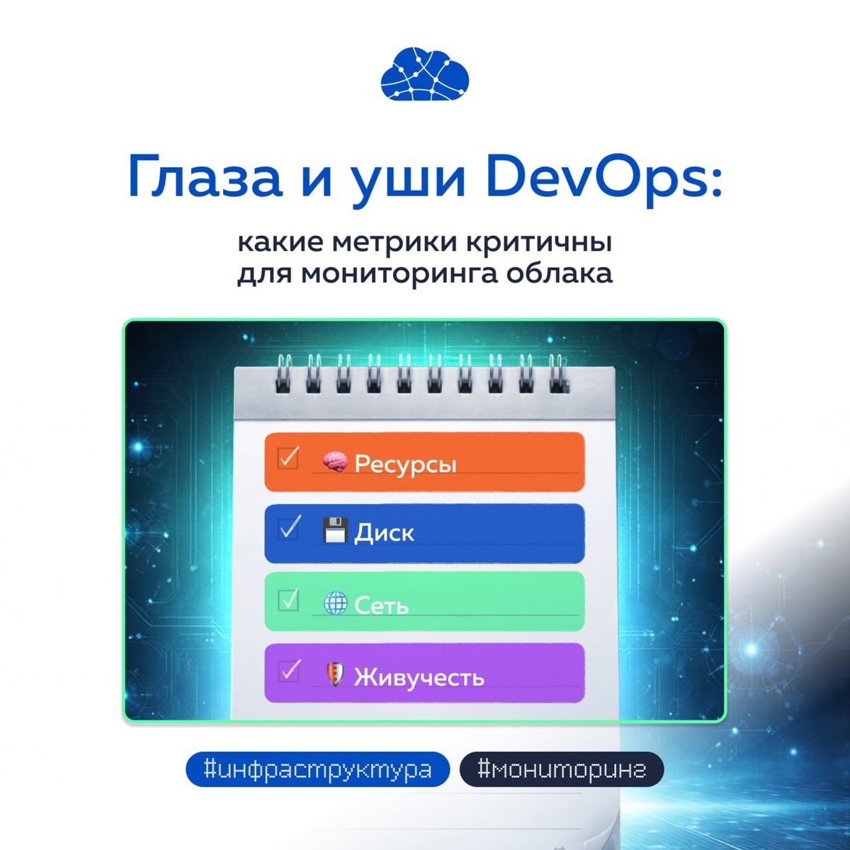 Но на деле это ваш главный навигатор, который помогает действовать на опережение. Чтобы не гадать, а понимать, куда движется сервис, важно сфокусироваться на нескольких ключевых метриках. Мы собрали чек-лист основных показателей, за которыми рекомендуем следить. Сохраняйте пост в «Избранное», чтобы не потерять. 🔍 Вычислительные ресурсы (CPU & RAM) 🔹 Загрузка CPU: средняя и пиковая загрузка. Постоянная загрузка выше 80% — сигнал к оптимизации или масштабированию. 🔹 Использование RAM: потребление и своп. Регулярный выход в своп (swap usage) — верный признак нехватки оперативной памяти, которая тормозит всё. Когда пиковое потребление стабильно приближается к максимальному объему, пора масштабироваться, даже если своп еще не задействован. 💾 Дисковая подсистема 🔹 IOPS: количество операций чтения/записи в секунду. Падение показателей ниже ожидаемых — индикатор проблем или неверной конфигурации. Для ресурсов в облаке проверьте, что выбран подходящий тип диска. У более дешевых вариа