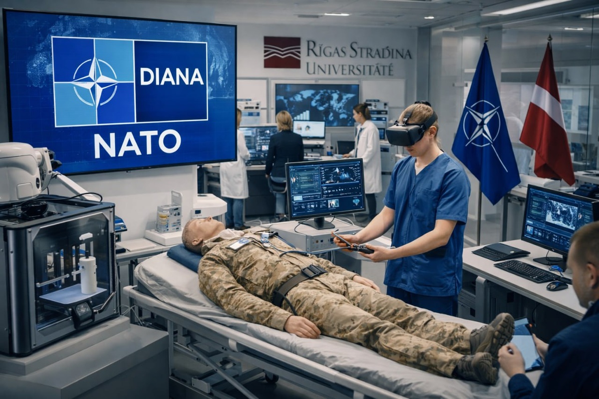 📼 В Латвии создан первый гражданский центр тестирования в рамках программы НАТО «Диана» (Акселератор оборонных инноваций для Северной Атлантики). Площадкой выбран Рижский университет имени Страдыня, ставший первым объектом такого типа вне военной базы страны. Программа «Диана» — это механизм НАТО по ускоренному внедрению технологий двойного назначения через кооперацию гражданской промышленности и оборонного сектора. Университет присоединяется к сети из более чем 200 испытательных центров альянса. Площадка предоставляет стартапам и разработчикам лаборатории, симуляционные мощности и исследовательскую экспертизу. ℹ️ Медицинские технологии и моделирование боевых условий Координацию работы с компаниями берет на себя Инновационный центр Рижского университета имени Страдыня. Основная часть тестирования будет сосредоточена в Центре медицинских образовательных технологий — одном из наиболее развитых симуляционных комплексов Северной Европы. Здесь моделируются клинические и тактические сцена