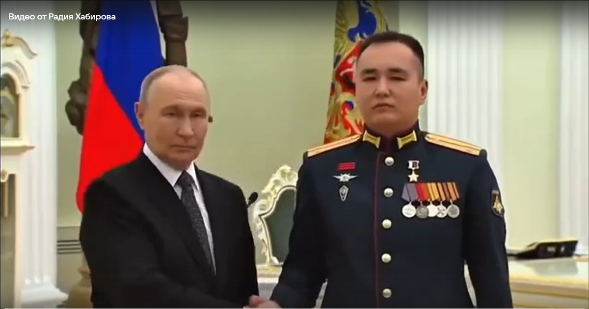 Наш земляк, капитан Василь Ямалетдинов, из Салаватского района, был удостоен почетного звания Героя Российской Федерации. Верховный Главнокомандующий Владимир Владимирович Путин вручил государственную награду – медаль «Золотая Звезда» – военнослужащему сегодня, в торжественный День защитника Отечества, в стенах Кремля. Василь Камилович Ямалетдинов занимает должность командира роты в мотострелковом батальоне, входящем в состав 60-й отдельной мотострелковой бригады 5-й общевойсковой армии, дислоцирующейся в Восточном военном округе. - В декабре минувшего года подразделение под руководством капитана Ямалетдинова стало одним из первых, кто вошел в населенный пункт Гуляйполе. Мы испытываем глубокую гордость за нашего соотечественника! От имени всех жителей республики позвольте выразить сердечные поздравления Василю Ямалетдинову! - сообщил руководитель региона на своих страницах в соцсети. Источник: соцсети Радия Хабирова. Фото: скриншот видео.
