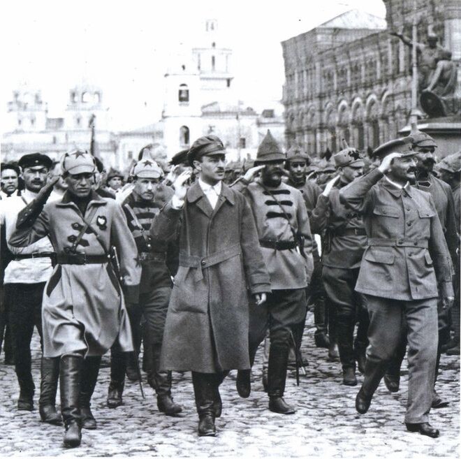 23 февраля 1922 года на параде в честь дня рождения Красной Армии наркомвоенмор товарищ Троцкий рассказал, как товарищи бойцы и командиры преодолели все трудности, а потом сообщил: