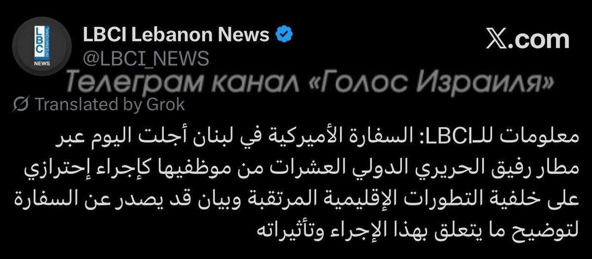 ⚡️США сегодня эвакуировали десятки сотрудников своего посольства в Ливане, — ливанский телеканал LBCI