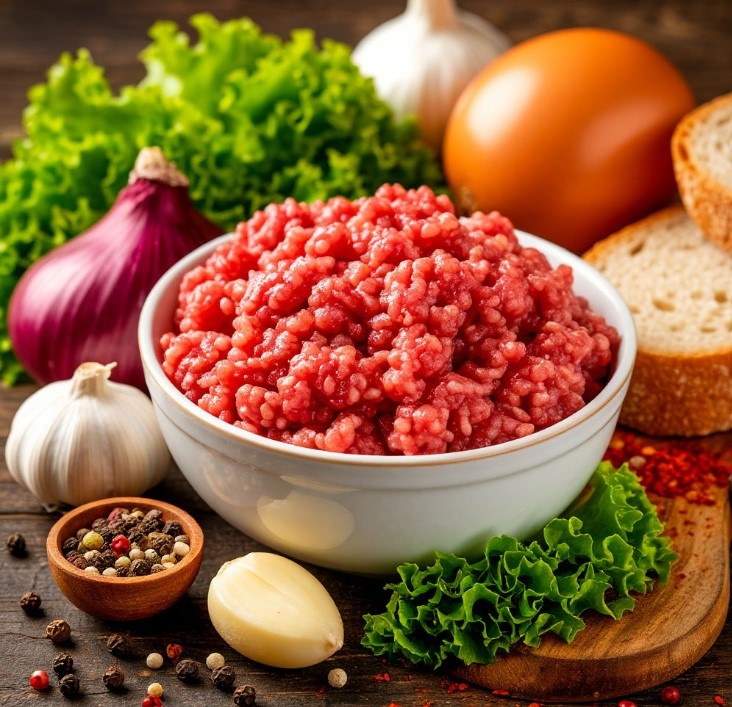 Говяжий фарш — нежирный, плотный, с ярким мясным вкусом. Требует добавления жира или более жирных компонентов для сочности. Идеален для котлет, если смешать его со свининой, для лазаньи, болоньезе и диетических блюд.