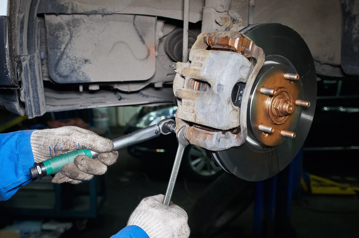 Необходимые инструменты и материалы: 1. Отсоедините провод от клеммы «минус» на аккумуляторной батарее. Это предотвратит случайное срабатывание системы. 2. Очистите суппорт от грязи и ржавчины. Используйте ветошь, а при сильных загрязнениях — обезжириватель или специальный очиститель тормозов. 3. Оторвите болты крепления суппорта. Если они покрыты коррозией, обработайте их проникающей смазкой. В некоторых случаях колодки фиксируются только направляющими — тогда их нужно извлечь. Аккуратно снимите суппорт и подвесьте его так, чтобы не повредить тормозной шланг. 4. Извлеките старые колодки. Осмотрите состояние направляющих пальцев суппорта: манжеты должны быть целыми, а сами направляющие — не подклинивать. 5. Проверьте тормозной цилиндр. Осмотрите манжету цилиндра — при повреждении или трещинах требуется замена суппорта или его ремонт. 6.Отодвиньте поршень тормозного цилиндра. Для передних суппортов используйте специальный инструмент или отвёртку, чтобы аккуратно вдавить поршень внутрь.
