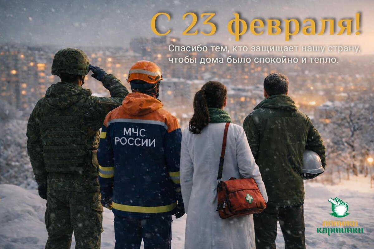 ! Спасибо всем, кто сегодня защищает нашу страну и стоит на страже жизни и безопасности людей — военным, спасателям, врачам, сотрудникам служб безопасности, волонтёрам и людям разных профессий, чья работа — беречь других. И с благодарностью вспоминаем тех, кто защищал Отечество раньше и передал нам мирную жизнь. Благодаря Вам мы можем спокойно жить, обнимать близких и возвращаться домой. Пусть Вас всегда ждут родные, горячий чай после дороги и крепкое здоровье рядом. 💚 #23февраля #деньзащитникаотечества #спасибовам #аптекикартинки #искусствоздоровья