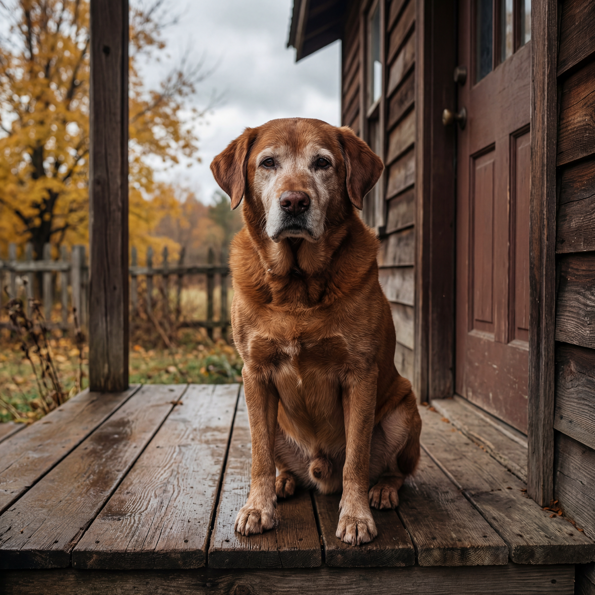 Я остановился в трёх шагах от ступенек. Пёс не двинулся. Смотрел прямо на меня, не отводя глаз. Рыжая шерсть потускнела, морда поседела, но взгляд остался тем же – умным, внимательным.