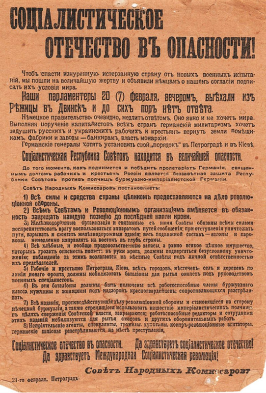 Конечно, в этой листовке всё было очень сочно окрашено в идеологический контекст и сопротивление войскам Германии преподносилось, как революционная борьба против полчищ буржуазно-империалистической Германии, которые стремятся ликвидировать в России именно социализм. Тем не менее, это сработало и в красноармейских войсках появилась мотивация к стойкому отражению немецкого наступления.