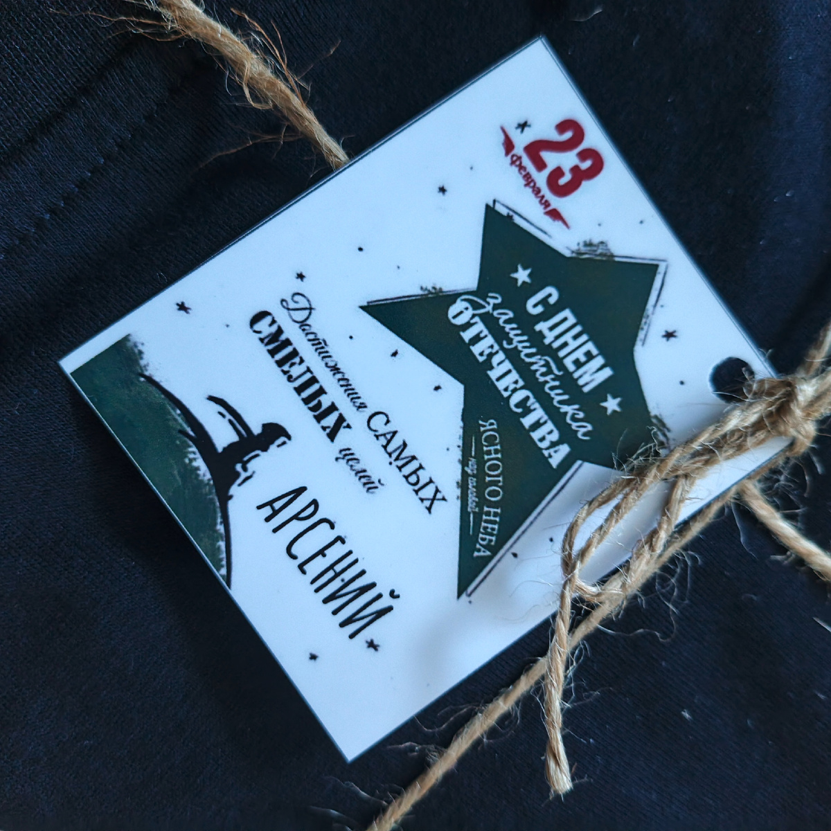 Все футболки я сложила так, чтобы надпись оказалась внутри, а чтобы не перепутать кому что дарить, сверху привязала маленькую именную открытку.