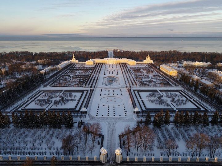 Представьте себе белые дорожки парка, укрытые пушистым снегом, величественный Большой дворец, словно погруженный в сон, тихое журчание замерзших фонтанов... Все это создаёт поистине сказочную атмосферу, наполненную волшебством и гармонией.