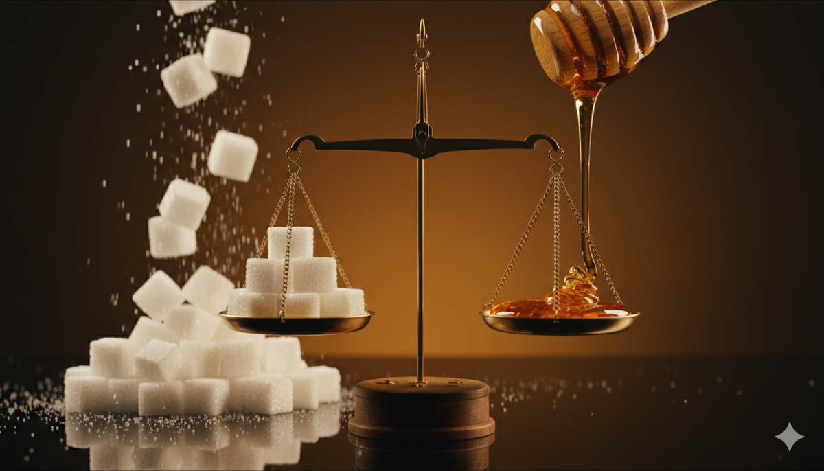 «Я за здоровое питание, поэтому сахар в чай не кладу, только ложечку мёда». Слышали такое? А может, сами так говорите? Мёд окружен ореолом святости. Это же «дар природы», «живой продукт», «кладезь витаминов». А белый сахар — это «белая смерть» и «химия». Кажется логичным заменить «плохое» на «хорошее» и ждать чудес: похудения, чистой кожи и вечной энергии. Но давайте уберем лирику и посмотрим на биохимию. Спойлер: вашему организму почти всё равно, откуда пришла глюкоза — из сахарницы или с пасеки. Многие удивляются, узнав, что с точки зрения химического состава мёд и столовый сахар — почти близнецы. Когда вы съедаете ложку мёда, ваш организм расщепляет его на те же самые простые сахара. Для поджелудочной железы нет разницы, благородный это гречишный мёд или рафинад из "Пятерочки". Инсулин выделится в любом случае. «Но в мёде же польза! Ферменты, микроэлементы, антиоксиданты!» — скажет защитник натурального питания. Это правда. В мёде действительно есть витамины группы В, калий, железо