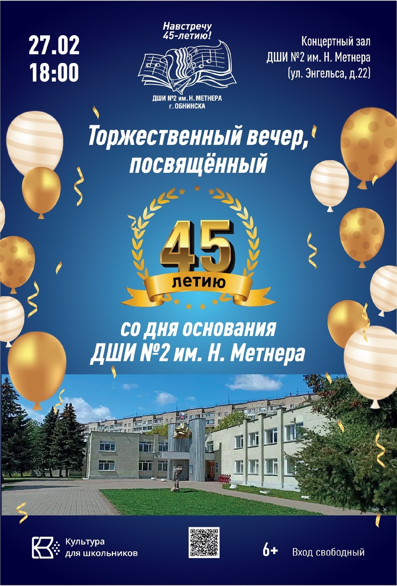 🎶27 февраля в 18:00 в концертном зале Детской школы искусств №2 имени Николая Метнера состоится торжественный вечер, посвящённый 45-летию