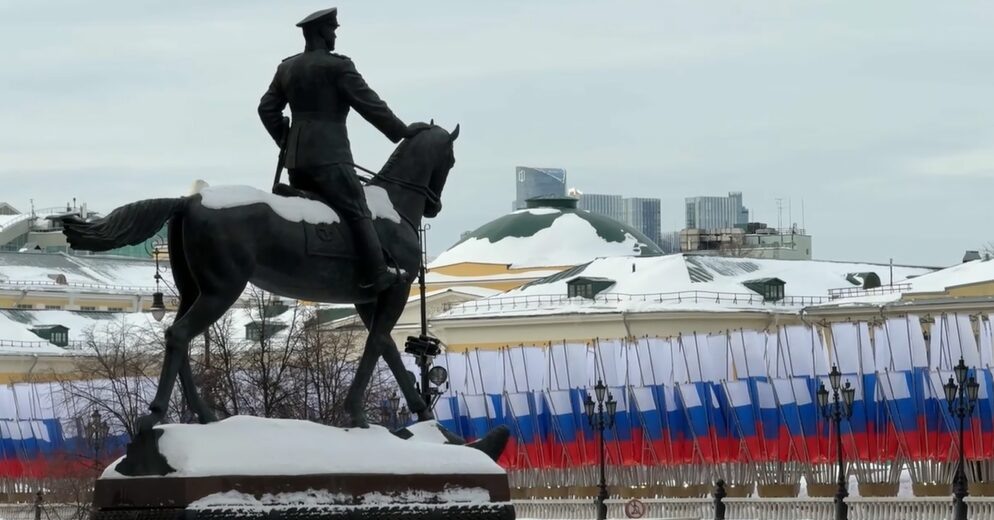 Москву празднично украсили ко Дню защитника Отечества. На кадрах, снятых в воскресенье, государственные флаги развеваются на фоне Спасской башни, а праздничные огни освещают здание российского правительства и домов на Новом Арбате. В объектив также попали пассажиры метро, идущие по платформе под яркими декорациями. День защитника Отечества ежегодно отмечается в России и некоторых странах постсоветского пространства 23 февраля.