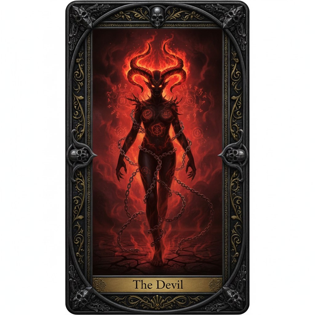 Суть: Дьявол указывает на искушения, зависимости или ощущение ловушки. Это может быть материализм, нездоровые отношения или шаблоны, удерживающие вас. Посмотрите правде в глаза: часто то, что вас сковывает – это ваши собственные страхи и неосознанные желания. Пришло время осознать истинную природу ваших цепей. Совет: Осознайте, что у вас больше контроля, чем кажется. Разберитесь, что вами движет: истинные потребности или навязанные желания. Освободитесь от излишеств, противостойте манипуляциям (внешним и внутренним). Признайте свои "теневые" аспекты, чтобы взять над ними верх и найти путь к подлинной свободе. 🔮 Магический знак: Разорви свои цепи.