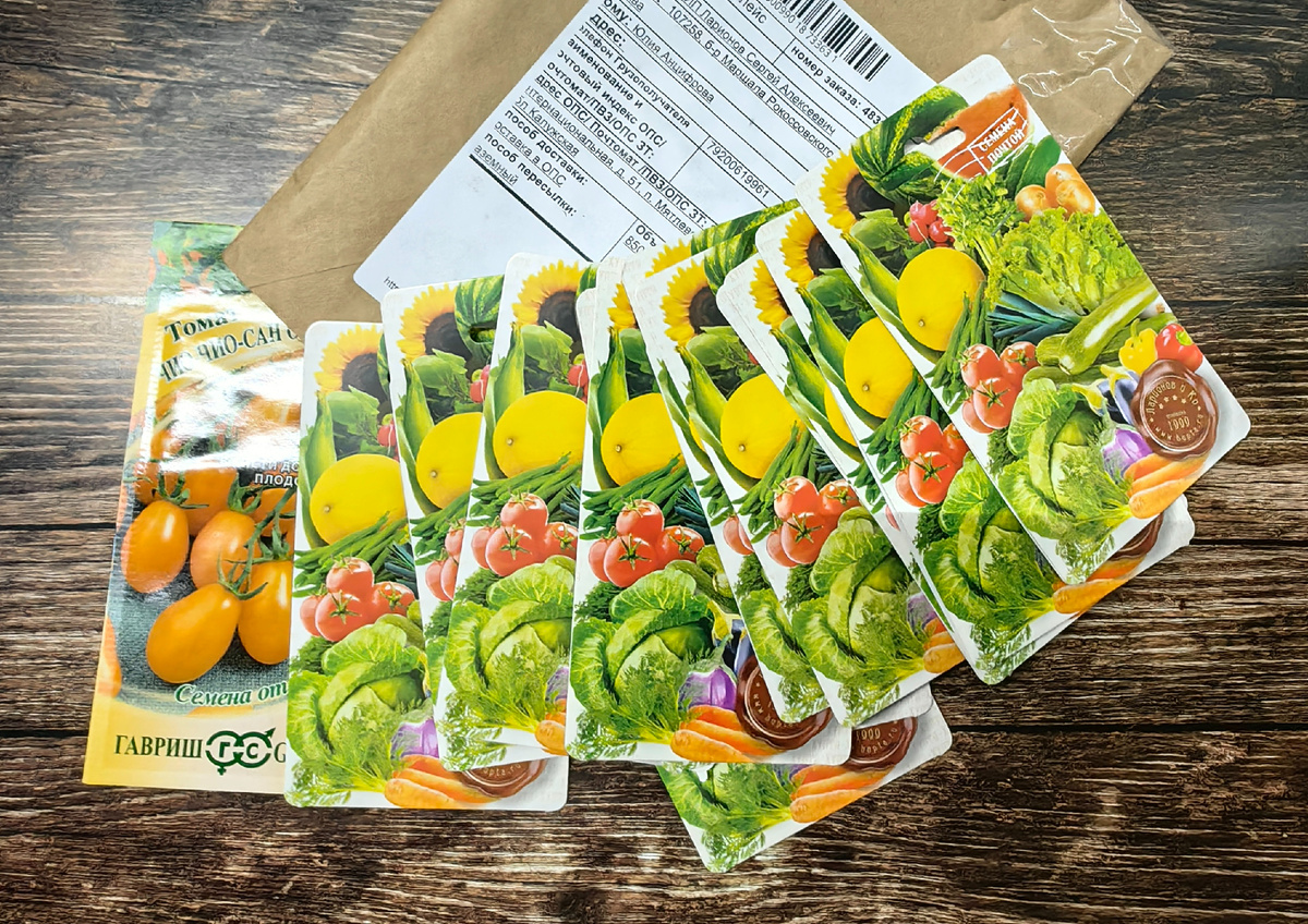 Друзья, мне искренне казалось, что в этом году я обойдусь практически без покупок семян))) Ведь многое закупила и не высаживала в прошлом сезоне, так что культур осталось, как говорится, до горизонта!))) Но всякий раз оказывается, что мне прямо кучу всего надо))))) И вот прямо очень сильно и прямо сейчас!))) Собственно, я искала баклажан Лейре. Сперва купила семена на маркетплейсе, но мне они показались подозрительными. Я сомневаюсь, что прислали именно этот гибрид. Так что решила подстраховаться и купить в более надежном месте, на сайте Хупта.рф. Сайт этот я знаю уже какое-то время, но заказала там впервые. И очень удивилась, увидев цветные пакетики))) Обычно присылают семена просто в прозрачных зип-пакетах. А тут такое роскошество!)))