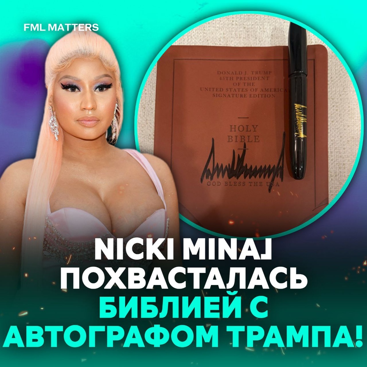 ! Рэперша показала в соцсетях необычный подарок — Библию с личной подписью Дональда Трампа. «Один из самых значимых подарков, которые я когда-либо получала», — написала она. Норм подарок? ❤️🔥/👎 💀 FML MATTERS