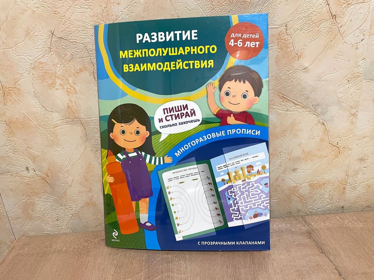 Я нашла решение, которое снимает напряжение и превращает «тренировку руки» в игру: Многоразовая пропись с прозрачными клапанами (издательство Эксмо). Справа и слева обычные листы накрываются специальной плёнкой — по ней можно писать любым фломастером или маркером, а потом стирать салфеткой. Никаких ластиков и слёз из-за «кривой линии»: попробовали, стерли, сделали лучше. И так — сколько угодно раз. Мне нравится, что это не просто «обводилки». Пособие придумано для развития межполушарного взаимодействия у детей 4–6 лет. Задания выстроены так, чтобы подключать оба полушария сразу: рисуем одновременно двумя руками, делаем зеркальные рисунки, выполняем упражнения на координацию, решаем маленькие логические задачки. Пока ребёнок увлечённо выводит узоры и цифры, мозг «прокладывает» новые нейронные связи — это помогает и в письме, и в чтении, и в общей учебной устойчивости. Практическая сторона: пропись служит долго, экономит бумагу и деньги. У кого несколько детей — вообще находка: ста