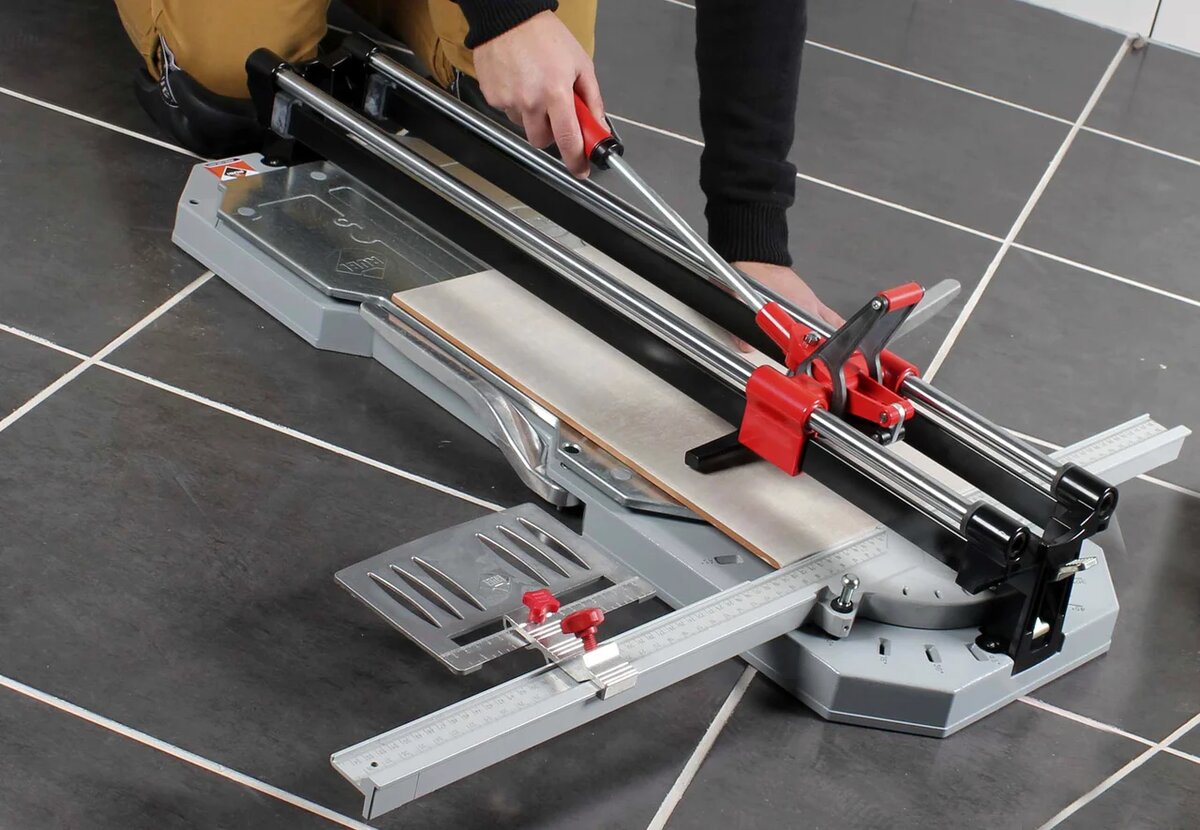 Ручные плиткорезы для крупного формата существуют. У них усиленная рама, длинная направляющая, мощный ролик. Но они требуют физической силы и сноровки. И не режут керамогранит толще 10–12 мм.