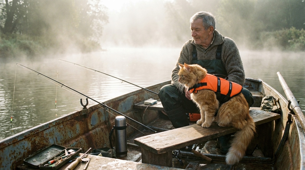 Утро на реке выдалось туманным и прохладным. Запах сырой земли, прелой ивы и речной воды пробивал до мурашек. Вокруг стояла абсолютная тишина, изредка нарушаемая лишь глухими всплесками кормящегося хищника вдалеке. Рыбалка с лодки вообще не терпит суеты: любой скрип уключины или стук термоса о дюралевое дно разносится под водой на сотни метров. Поэтому, когда из тумана вынырнула старая "Казанка" соседа, в которой сидел огромный, пушистый рыжий кот, я даже перестал жевать бутерброд от удивления. Приветствую вас, уважаемые рыбаки, вы на канале "Клевая рыбалка". Мы встали на якоря метрах в двадцати друг от друга, над хорошей русловой бровкой. Сосед закинул три бортовые удочки. Рыжий кот (звали его Боцман) вел себя как настоящий профи. Он не орал с перепугу, не метался по лодке и не пытался ловить лапой болтающиеся лески. На коте был надет забавный самодельный спасательный жилетик из оранжевой ткани. Боцман просто свернулся калачиком на деревянной банке (сиденье) и задремал, согреваясь в п