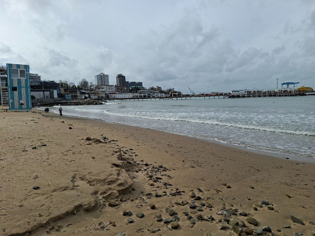 Февраль у нас, в курортном городке, самый малолюдный месяц. Это и понятно, каникулы и длинные праздники прошли, до следующих ещё время есть. Погода вовсе не привлекательная - снега нет, так есть холодный северный ветер. Солнца не дождёшься, утром покажется, днём спрячется, как будто его и не было. Море неспокойное, в это время даже привычных ко всякой погоде анапских моржей и просто одиночных любителей зимнего купания не часто у моря увидишь. Даже гулять по ветренному берегу, наслаждаясь одиночеством и постоянным рокотом моря, желающих мало. Да и небо - чаще серое, чем привычное и любимое нами ярко-голубое... В общем, чаще всего в феврале - безлюдно. Мечта интроверта... А ещё время - просто получше рассмотреть город, когда тебе никто не мешает. И пофантазировать: вот сейчас подтолкну ногой этот красивый блестящий мяч и покатится он, отражая в себе серое небо, по пустынной набережной.... а навстречу тебе мчатся Алые паруса, исполняющие мечту... Ах, да и только))
