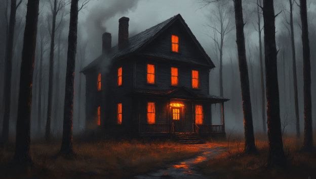 Дом стоял посреди небольшой поляны, словно вырос из земли за одну ночь. Старый, покосившийся, с окнами, похожими на слепые глаза. Свет исходил из окна на первом этаже — он то разгорался ярче, то почти угасал. Дверь была приоткрыта и тихо поскрипывала на ветру, будто приглашая войти.