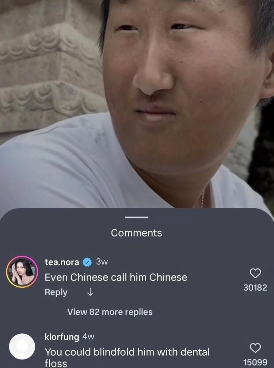 Игрока Реала обвинили в расизме из-за прикола с человеком азиатского происхождения 🇪🇸🇨🇳 Защитник сливочных Дин Хёйсен репостнул вот этот мем (на фото), который азиатские пользователи сочли расистским. В комментах на картинке написано: Даже китайцы называют его китайцем и ему можно завязать глаза зубной нитью. Я приношу искренние извинения моим китайским друзьям. Ранее я непреднамеренно отправил контент, содержащий оскорбительные сообщения. Это было совершенно непреднамеренно, и я сожалею о том, что вызвал у вас неприятные эмоции, — сказано в заявлении Хёйсена, которое Реал опубликовал на китайской платформе Weibo.
