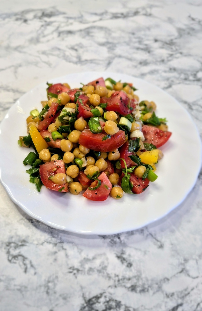 Лёгкий,вкусный и полезный салат с нутом и помидорами! Это отличное блюдо для тех, кто следит за питанием