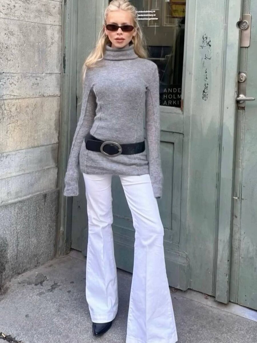 Еще одно трендовое сочетание 2026-го, которое точно стоит взять на заметку — удлиненный лонгслив + ремень