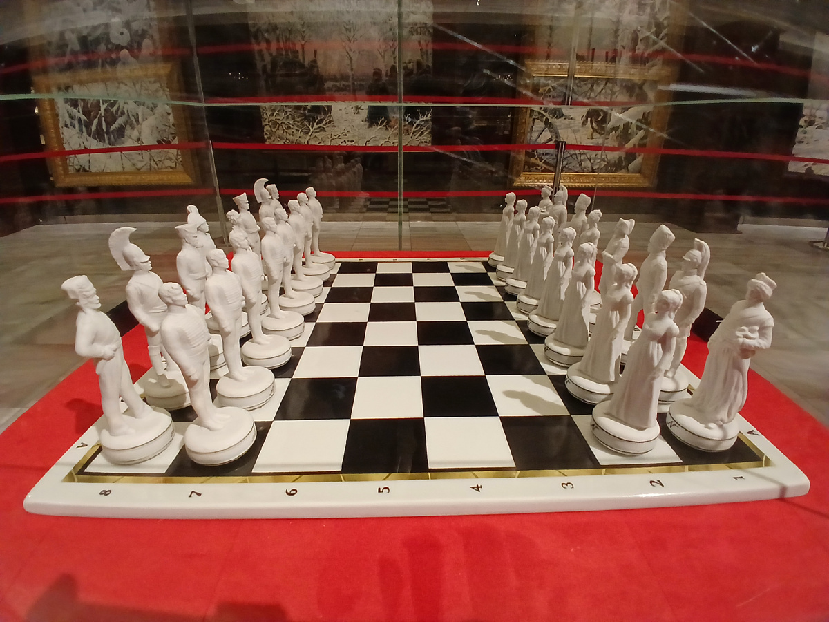 В музее Отечественной войны 1812 года открылась мини выставка патриотической скульптуры. Продлится она до 18 мая 2026 года. Выставка представляет собой две витрины и шахматную доску между ними и расположена в зале, где висят картины Верещагина.