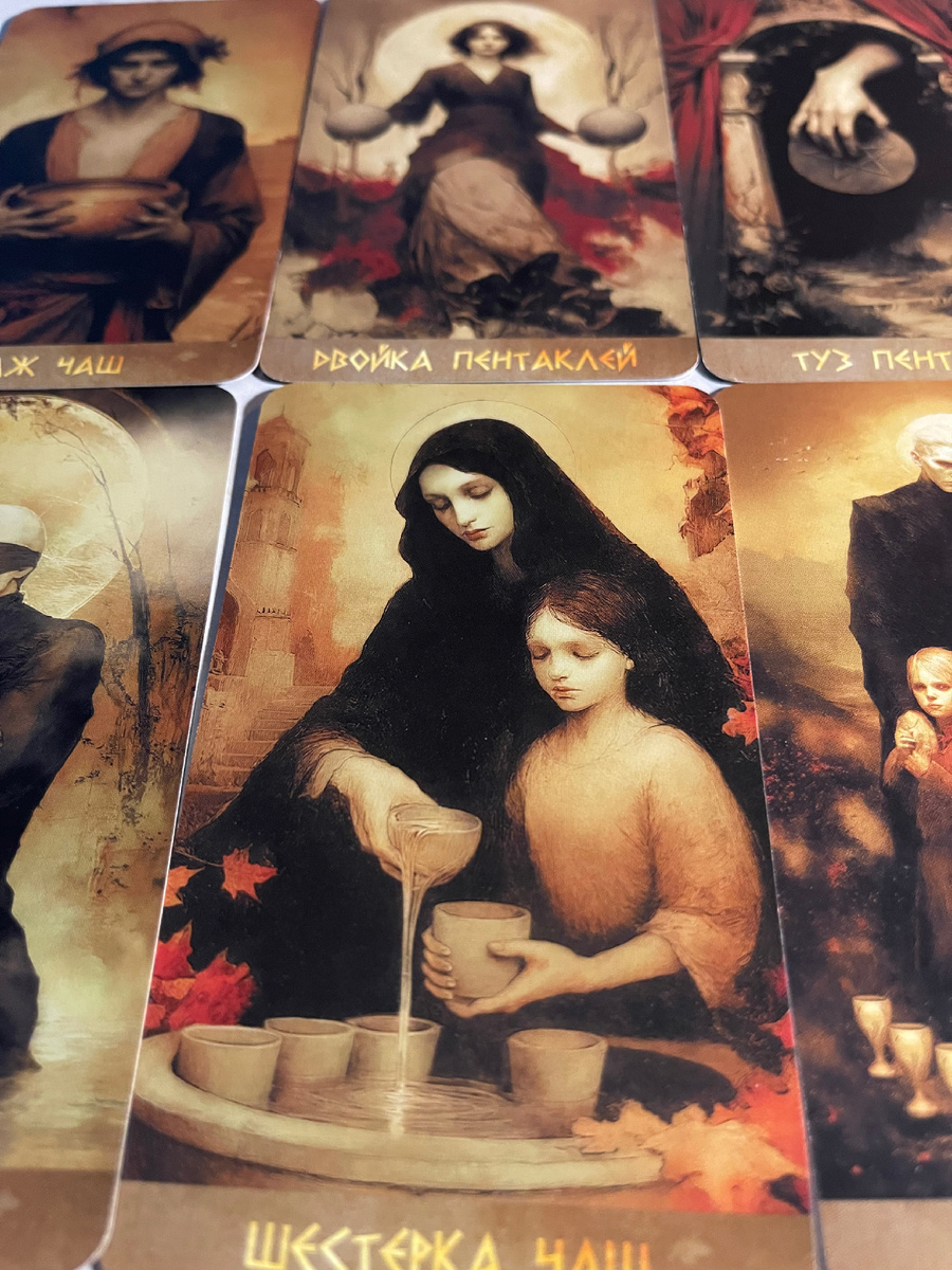 Картина получается двойственной, но в целом позитивной. С одной стороны, человек испытывает к вам искреннюю симпатию («Паж Чаш») и мечтает о гармоничном союзе («Десятка Чаш»). Он видит в отношениях потенциал для стабильности («Туз Пентаклей») и связывает вас с чем‑то светлым («Шестёрка Чаш»).