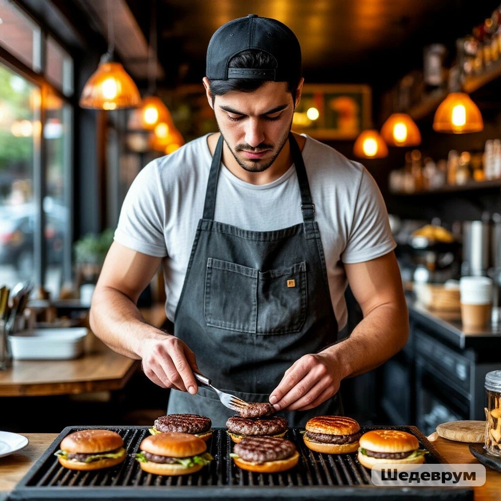 Независимо от бессонной ночи, плохого самочувствия или экзистенциального кризиса, рабочая смена Никиты начиналась одинаково. Он надевал форму, завязывал фартук и оставлял все свои проблемы за дверью служебного входа. Первые минуты — механические. Включить гриль. Проверить фритюр. Достать полуфабрикаты из морозилки. Никита работал быстро и точно. Не потому, что любил эту работу, а потому, что она была противоположностью его домашнему хаосу. Есть инструкция. Есть тайминг. Есть правильный результат. Есть контроль с его стороны.