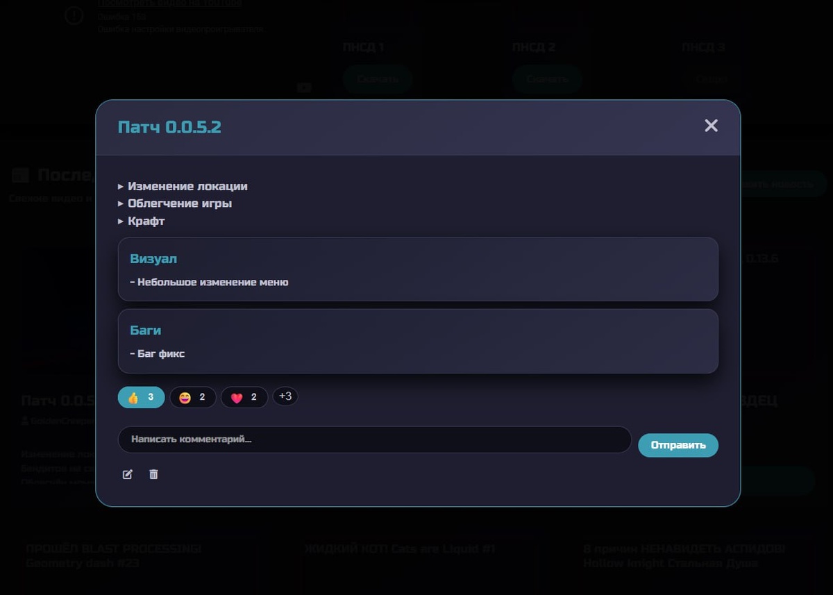 Аккаунт, Посты, Реакции, Комментарии, Редактор