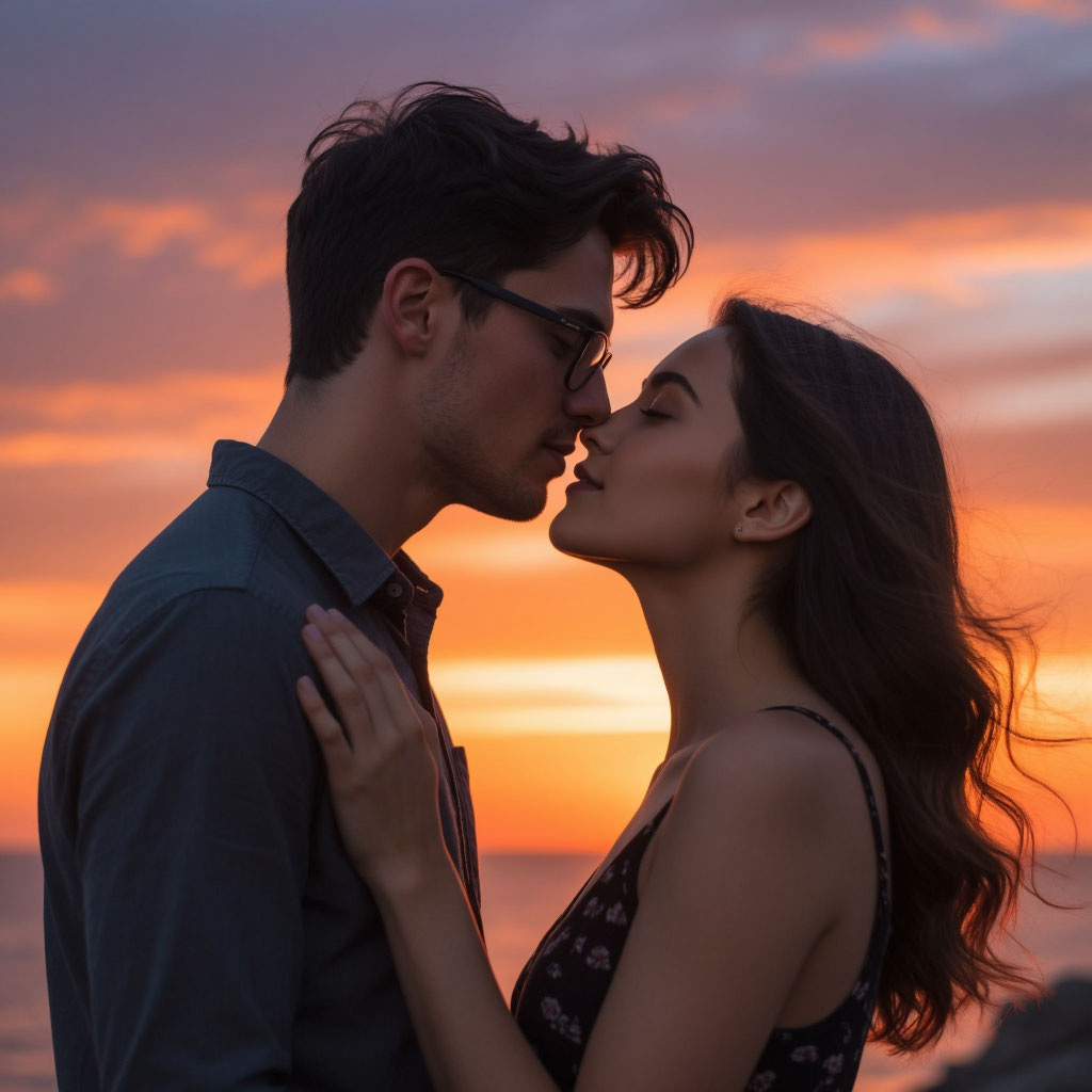 В этот момент весь мир словно отошёл на второй план: затихла музыка, замер ветер, растворились в сумраке очертания набережной. Были только они — два человека, чьи сердца наконец нашли друг друга.