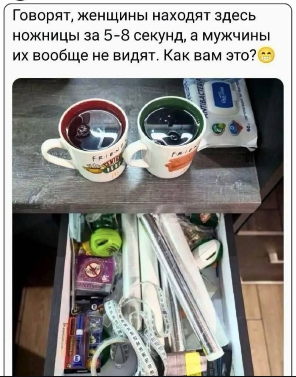 поначалу подумала - походу я мужчина😃🤣 но надев очки, сразу нашла ножницы😅👍