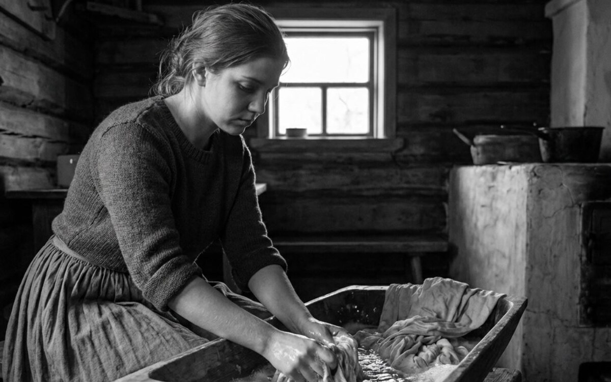 Из последних сил Ольга жмыхала свои пожитки. Каждая вещь казалась тяжёлой не от ткани — от прошлого, которое в неё въелось. Она выжимала, вода стекала мутными струйками. На улице мороз тут же взялся за немудрёные вещи: сделал жёстким, как доска, — и будто правда, начал вытягивать из ткани тот чужой, тюремный дух.